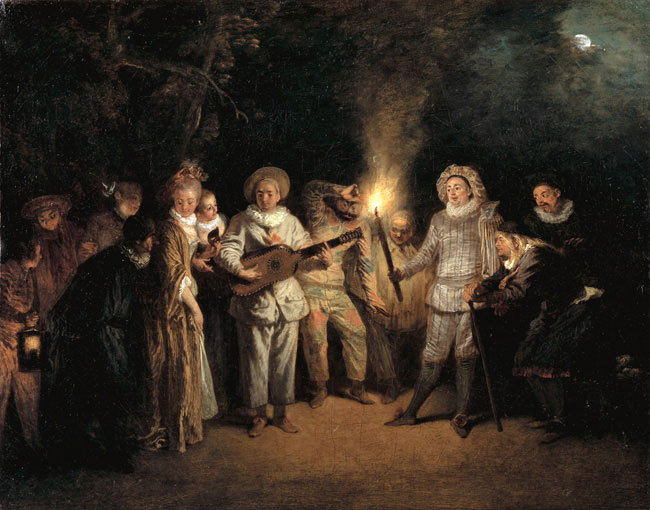 The Roofer’s Son: Watteau at the Met » Jean-Antoine Watteau Love in the Italian Theater (L’Amour au théâtre italien 1716. Oil on canvas; 14-5/8 x 18-7/8 inches. Gemäldegalerie, Staatliche Museen Preussischer Kulturbesitz, Berlin.