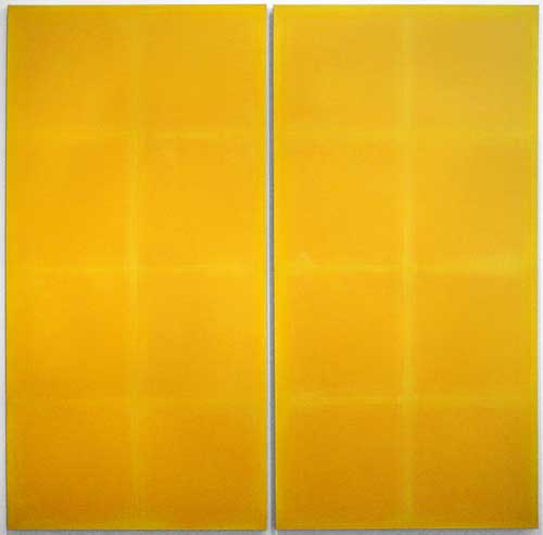 Double Indian Yellow 2008. Acrylic on Canvas, 2 panels, 72 x 36 inches each. Courtesy of Walter Randel Gallery