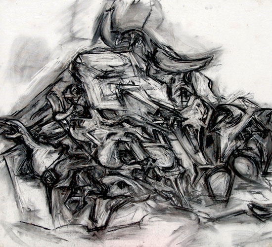 Mercedes Matter at the Weisman Gallery, Pepperdine University » Mercedes Matter, Still Life with Skulls, ca. 1978-98, Charcoal on canvas, 40 x 44 inches, Estate of the artist