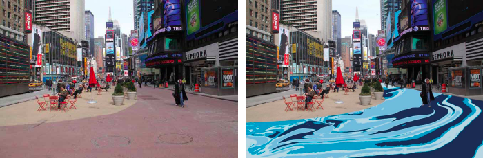 Molly Dilworth to refresh Times Square with cool blue surface treatments » Near 43rd Street, looking North. Courtesy DOT