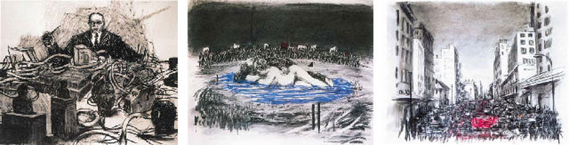 Taking the World by Drawing: William Kentridge and Animation » three stills from William Kentridge’s video, Johannesburg – Second greatest city after Paris, 1989-91.