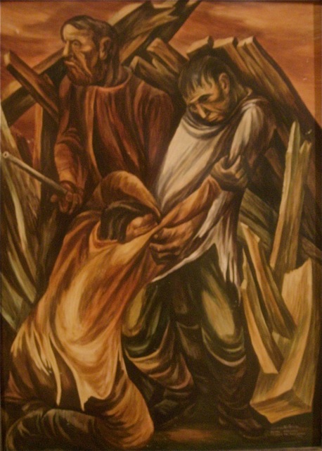Los Tres Grandes: US Artists Interpret the Mexican Muralists » Edward Millman, Fresco Detail, St Louis, MO Post Office, 1942. Tempera on masonite