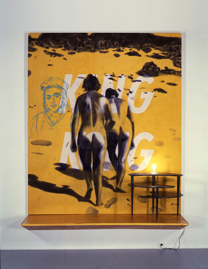 David Salle, King Kong, 1983. Acrylic, light bulb, oil/canvas, wood, 123 x 96 x 26 inches. The Brant Foundation, Greenwich, Connecticut, Courtesy of Mary Boone Gallery, New York © David Salle, Licensed by VAGA