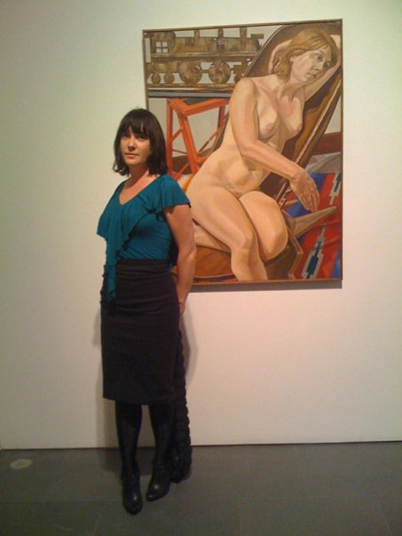 Hell hath no fury like a model spurned: A Pearlstein nude attracts the wrong kind of attention » Candace Mills posing with a work by Philip Pearlstein