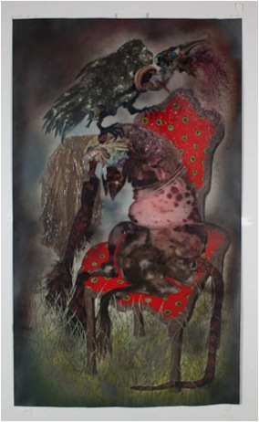 November 2010: Anderson-Spivy, Buhmann and Plagens with moderator David Cohen » Wangechi Mutu, Nobody loves me. It’s true., 2010. Mixed media ink, paint, collage and Mylar, 95 x 54 Inches, Courtesy Gladstone Gallery