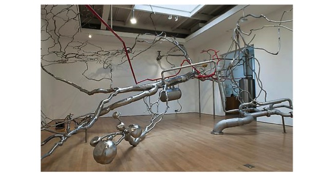 Roxy Paine, Distillation, 2010. Stainless steel, glass, paint, pigment. Courtesy James Cohan Gallery