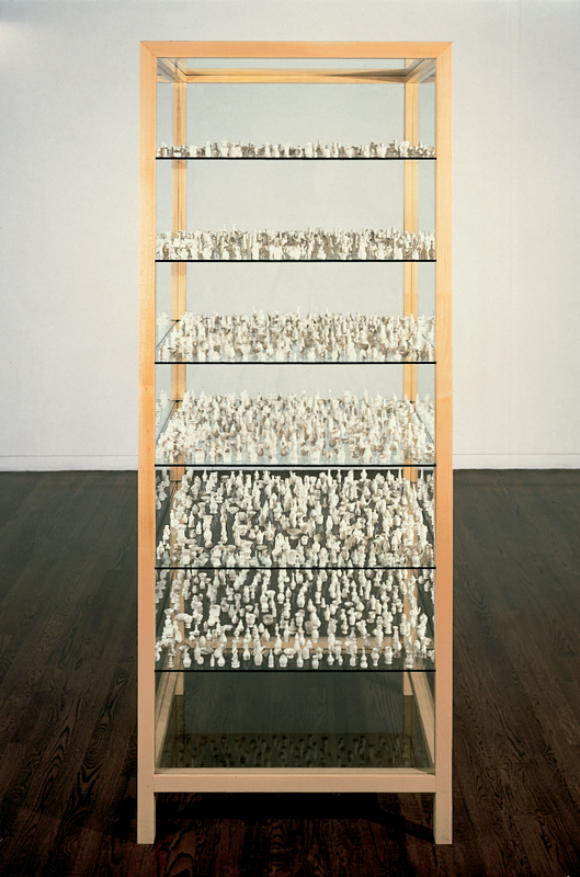 Charles LeDray, Milk and Honey, 1994–96. 2000 porcelain objects, glass, and wood, 77 × 30 × 30 in. (195.6 × 76.2 × 76.2 cm) overall. Whitney Museum of American Art, New York; purchase with funds from the Contemporary Painting and Sculpture Committee 96.75a-b