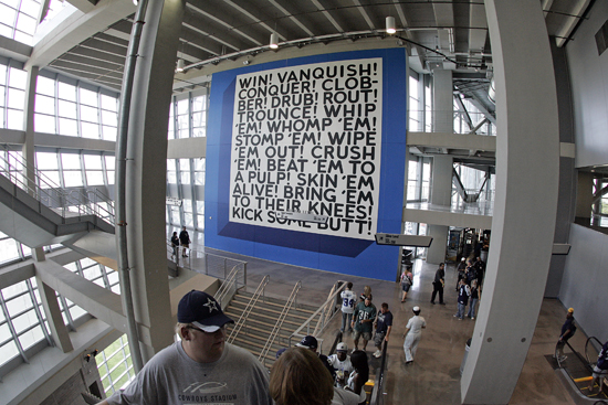 Heavy Hitters: The Art of Football, Dallas-Style » Mel Bochner, Win! 2009. Acrylic on Wall?38 feet 2 inches by 33 feet 3 inches. Located in Northeast Monumental Staircase. Photo: James Smith/Dallas Cowboys