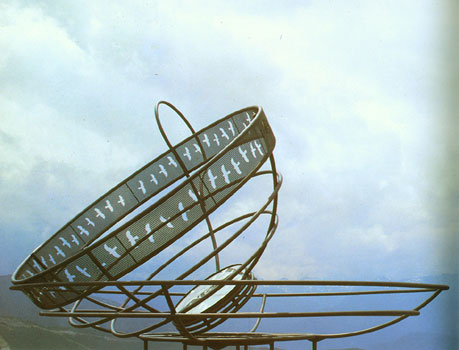 Preparing the Ground for a Shift in Thinking: Dennis Oppenheim, 1938-2011 » Dennis Oppenheim, Tempest in a Teacup, 1992. Rolled steel tube, perforated steel, sandblasted glass, 20 x 29 x 29 feet. Principality of Andorra. Photo: J. M. Ubach. Courtesy of Dennis Oppenheim Studio.