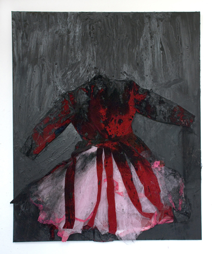 Spring Chickens: The MFA Thesis Show Season Is Underway » A 2011 graduate of the Pratt Institute: Jessica Soininen-Eddis, Ditch, 2010. Oil, velvet dress and lace tutu on canvas, 60 x 60 inches. Courtesy of the Artist