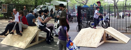 In the Spirit of a World Fair, but Greener: The New Museum’s Festival of Ideas for the New City » Festival goers interact with Peer Review, a project by the collective BroLab installed in Sara D. Roosevelt Park at the corner of Rivington & Forsyth streets, May 7, 2008