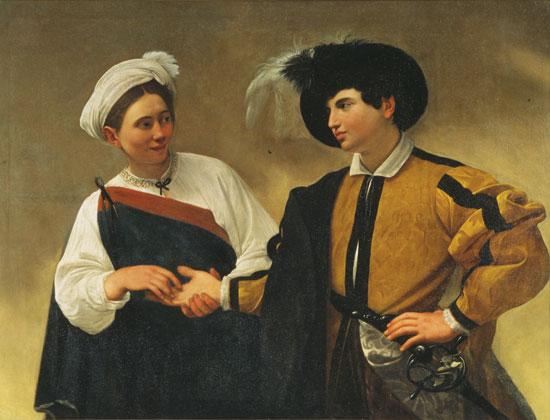 Caravaggio, The Fortune Teller, 1594. Oil on Canvas. Courtesy of Scala / Art Resource, NY, Pinacoteca Capitolina, Musei Capitolini, Rome, Italy.