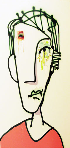 Keeping Your Balance in the Windy City: Report from Chicago » Ed Valentine, Untitled Spray Portrait with Painted Eye and Green Drip, 2011. Oil, acrylic, enamel and spray paint on canvas, 96 x 48 inches. Courtesy of Linda Warren Gallery, Chicago