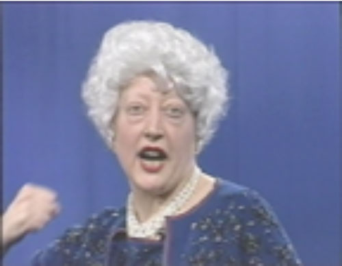 Martha Wilson (with sound by Ron Littke), Martha Wilson as Barbara Bush, March 11, 1991. Color video with sound 7 mins., 23 secs. Courtesy of Martha Wilson