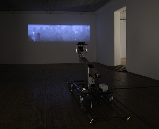 All That Is Solid Melts Into Air: Simone Jones at Ronald Feldman » Simone Jones, End of Empire, 2011 (in collaboration with Lance Winn). Custom-made robotic dolly and track, digital projector, video run time: 14 minutes. Photo: Eleanore Hopper. Courtesy Ronald Feldman Fine Arts, New York
