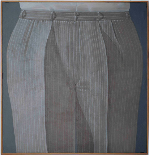 Sly Sexuality and Rigorous Tailoring: Late Paintings of Domenico Gnoli » Domenico Gnoli, Striped Trousers, 1969. Acrylic and sand on canvas, 67 x 63 inches. Private Collection. Photo: Alessandro Vasari