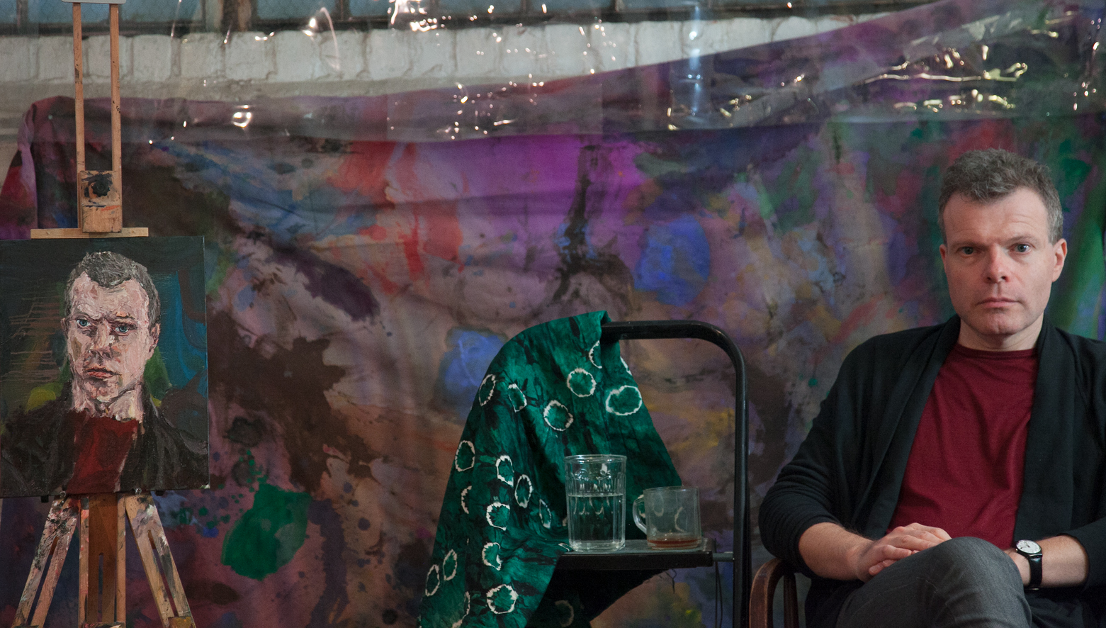 Sitting Still on the Brink of Sandy: Nick Miller Paints a Portrait » David Cohen with his newly painted portrait by Nick Miller. Photo by, and courtesy of, Nick Miller