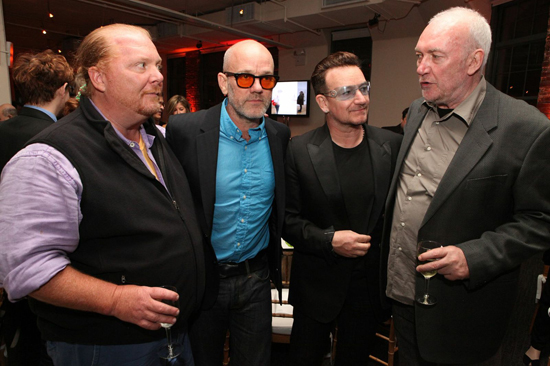 Mario Batali, Michael Stipe, Bono and Sean Scully at the Drawing Center Gala, April 10, 2013. Photo by Hal Horowitz
