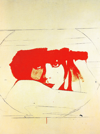 Imprinting Memory in Space: Giosetta Fioroni at the Drawing Center » Giosetta Fioroni, Liberty, 1965, pencil, white and red enamel on canvas, 57 1/2 x 44 13/16 inches. Collection of Nanni and Barbara Benazzo.