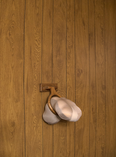 Maria Petschnig, Holdmetight, 2012. Wood, polyester, pantyhose, padding, 11 x 8 x 11 inches. Courtesy of the artist and One Stellar Rays