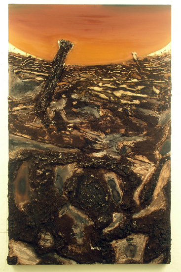 The World isn’t a Monochrome: In the Studio with DeShawn Dumas » DeShawn Dumas, Abstracting The Masses #1, 2008, coffee grinds, plaster, tar, dry pigment on board, 24 x 48 inches. Courtesy of the artist and Janet Kurnatowski Gallery.