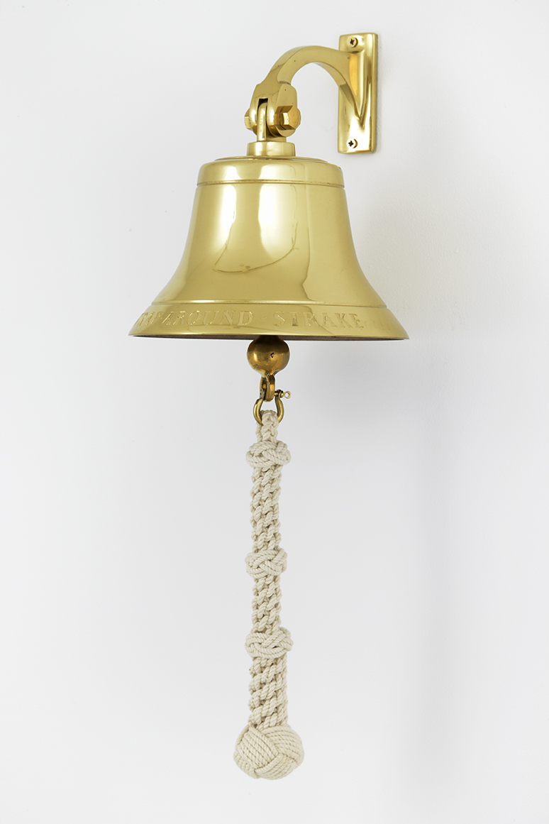 The Sea, the Sea: Ian Hamilton Finlay at David Nolan » Ian Hamilton Finlay, Ship’s Bells: Iroko Wrap-Around – Strake, 2002, brass, 8 x 7.5 x 8 inches, IF0550. Image courtesy of David Nolan Gallery.