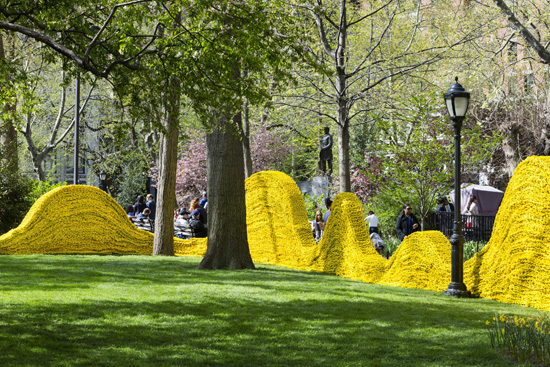 Back to Basics: Orly Genger at Madison Square Park » Installation view of Orly Genger’s Red, Yellow and Blue (2013) in Madison Square Park. Photo by James Ewing / Courtesy of Madison Square Park Conservancy.
