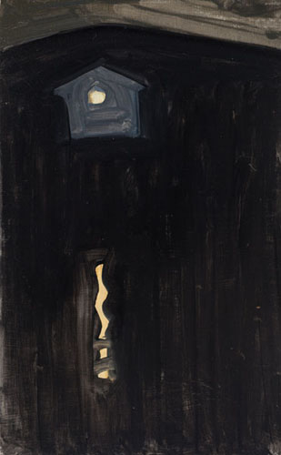 Presence, Absence, and Light in the Paintings of Elizabeth O’Reilly » Elizabeth O’Reilly, Gray House, Night, oil on panel 12″ x 7.5″, 2012. Courtesy of George Billis Gallery.