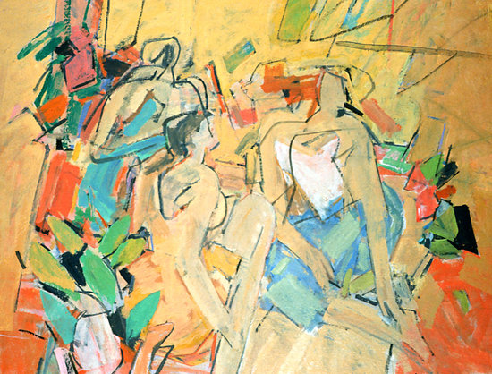 Intimist Glow, Expansive Gestures: Charles Cajori (1921-2013) » Charles Cajori, The Game, 1990-2000. Oil on linen, 60 x 78 inches. Courtesy of David Findlay, Jr. Fine Art