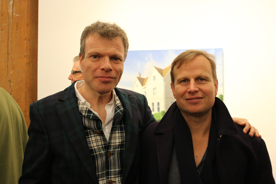 artcritical’s Holiday Party Launching “Come Like Shadows” at Zürcher Studio » David Cohen and Will Cotton in front of a work by Duncan Hannah
