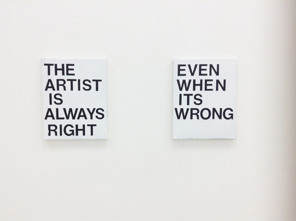 “the poems keep getting shorter/the explanations longer”: Leo Fitzpatrick at the National Exemplar » Leo Fitzpatrick, The artist is always right even when its wrong, 2013, acrylic on canvas 14”x 22”. Courtesy of the National Exemplar Gallery.