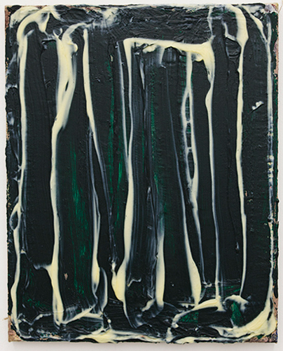 Robert Janitz, The Impeccable Erection of Plants, 2014. Oil, wax, and flour on linen, 24 x 20 inches. Courtesy of the artist and Team (gallery, inc.)