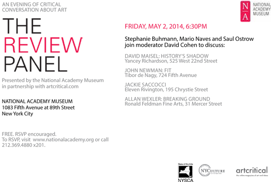 May 2014: Stephanie Buhmann, Mario Naves and Saul Ostrow with moderator David Cohen » flyer for May 2
