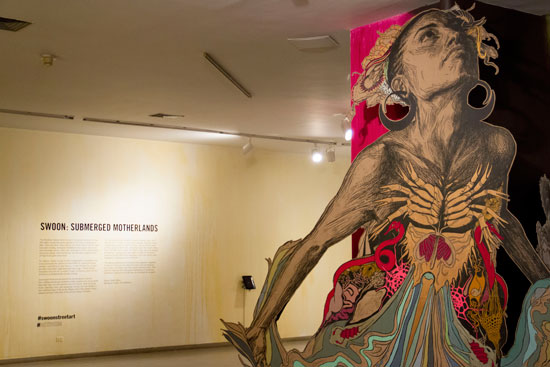 Installation view, “Swoon: Submerged Motherlands,” 2014, the Brooklyn Museum. Courtesy of the artist and the Brooklyn Museum.
