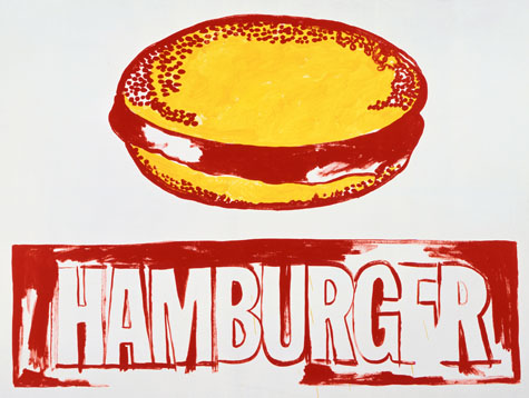 Andy Warhol, Hamburger, 1985-1986. Acrylic on linen, 50 x 66 x 1 1/4 inches. Courtesy of the Andy Warhol Museum.