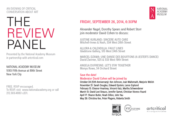 September 2014: Alexander Nagel, Dorothy Spears and Robert Storr with moderator David Cohen » TRP.9.26.14-flyer