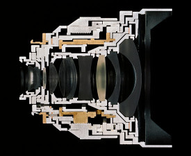 Christopher Williams; Cutaway model Zeiss Distagon T* 2.8/15 ZM / Focal length: 15mm. Aperture range: 2.8 – 22. No. of elements/groups: 11/9 / Focusing range: 0.3 m–infinity. Image ratio at close range: 1:18 / Coverage at close range: 43 cm × 65 cm. Angular field, diag./horiz./vert.: / 110/100/77? / Filter: M 72 × 0.75. Weight: 500 g. Length: 86 mm / Product no. black: 30 82016. Serial no.: 15555891. / (Subject to change.) / Manufactured by Carl Zeiss AG, Camera Lens Division, Oberkochen, Germany / Studio Rhein Verlag, Düsseldorf / January 18, 2013; 2013. Pigmented inkjet print, 16 × 20, inches. Private collection © Christopher Williams.