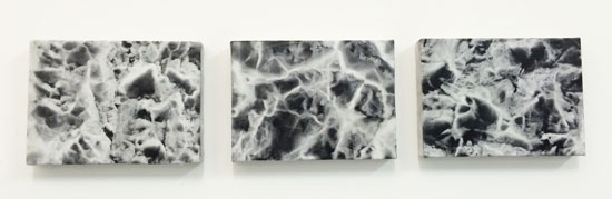 Vicky Colombet, Earth series: Triptych # 1304/5/6, 2014. Oil, pigment, alkyd wash on canvas, each 7-3/4 x 5-3/4 inches. Courtesy of Christian Duvernois Landscape/Gallery