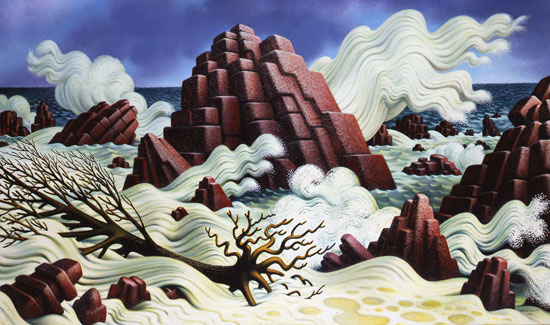 Peter Blume, Crashing Surf, 1982. Oil on canvas, 30 x 50 inches. Courtesy of Elisabeth and William Landes. Art © The Educational Alliance, Inc./Estate of Peter Blume/Licensed by VAGA, New York.