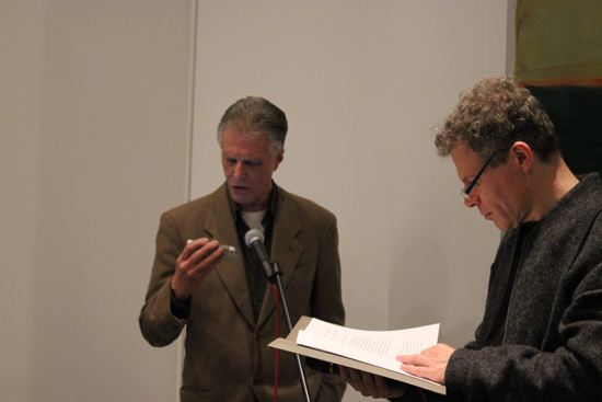 Robert C. Morgan reading, with David Cohen. Photo: Anna Shukeylo