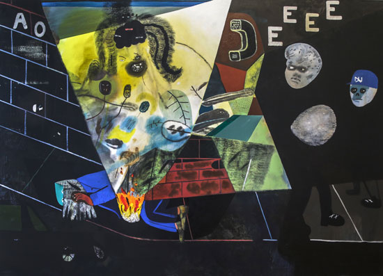 Glimpsed Curiosities: The Boyhood New York of Kenny Rivero » It-Happened-on-the-Corner,-2014.-Oil-on-Canvas,-60-x-84-in.-(152.4-x-213.3-cm)-