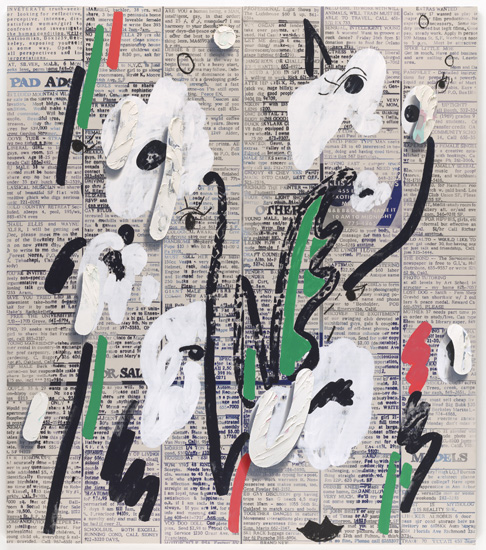 Roundtable: “The Forever Now” at MoMA » Laura Owens, Untitled, 2013, synthetic polymer paint and oil stick on canvas 137 3/8 x 119 7/8″, The Museum of Modern Art, New York. Enid A. Haupt Fund