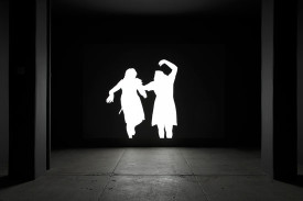 Alfredo Jaar, Shadows (detail), 2014. Lightbox with black and white transparency, 12 x 13 inches. Original photograph by Koen Wessing (1942-2011): Estelí, Nicaragua, September 1978. Courtesy of the artists and Galerie Lelong.