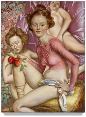 John Currin, Maenads, 2015. Oil on canvas, 48 x 36 inches. Courtesy of the artist and Gagosian Gallery.