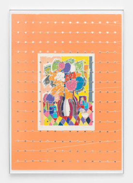 Brad Troemel; Gloria Vanderbilt ‘Tiger Lilies’, 2013 (29″ x 36″) Lithograph + 1946 – 2014 COMPLETE ROOSEVELT DIME SET ALL BU, Clad and Silver Proof; 2015. Vacuum seal on reinforced panel with aluminum frame. 66 1/2 x 48 inches. Image courtesy of the artist and Zach Feuer Gallery, New York.