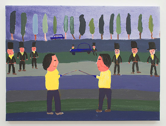Brian Belott; A Duel Gustavo da Silva, Age 9, Argentina; 2015. Flashe on canvas, 18 x 24 inches. Courtesy of the artist and 247364.