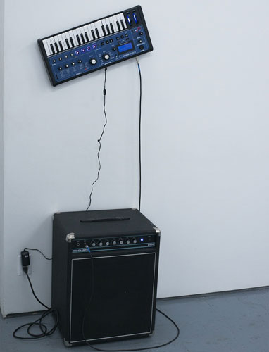 Carlo Ferraris A Flat, B Flat, B Sharp, 2015 Amplifier, keyboard, screw 68 x 24 x 18 inches, Courtesy LYNCH THAM