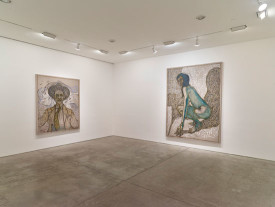 Installation view, “flowers, nudes and birch trees: New Paintings,” 2015, by Billy Childish. Courtesy of the artist and Lehmann Maupin.
