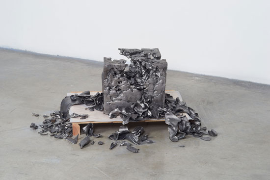 Sarah Sze, Gray Matter, 2015. Glazed ceramic, wood, plastic, stainless steel; 14 x 38 x 31 inches. Courtesy of the artist and Tanya Bonakdar Gallery, New York. Photo: Brett Moen.
