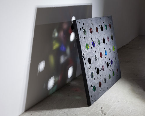 Davina Semo, “IT’S GOOD,” SHE WHISPERS. “SOMETIMES I FORGET HOW GOOD IT IS.”, 2015. Pigmented reinforced concrete, cast glass; 42 1/4 x 36 x 2 7/8 inches. Courtesy of the artist and Lyles & King. Photograph by Charles Benton.